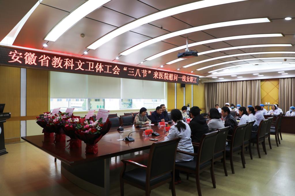3月8日上午,在第111个国际劳动妇女节和我国第98个妇女节到来之际,省教科文卫体工会吴海明主席、调研员唐成、李晓燕,主任科员李瑶一行,来院看望慰问坚守岗位的一线女职工代表,为她们送上慰问信和慰问品。副院长王珩、工会相关负责人参加慰问活动。