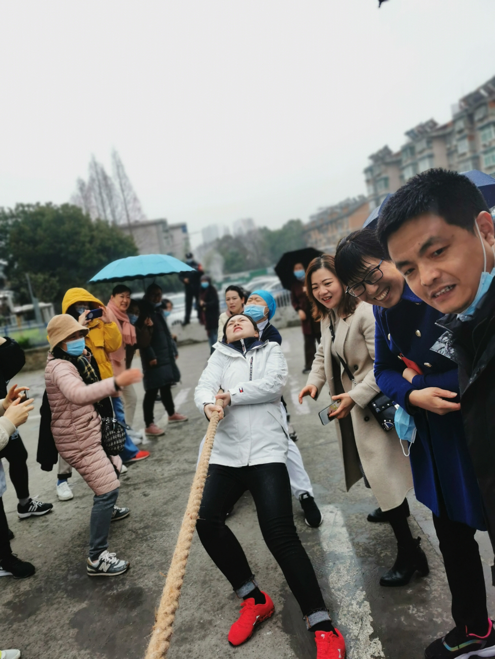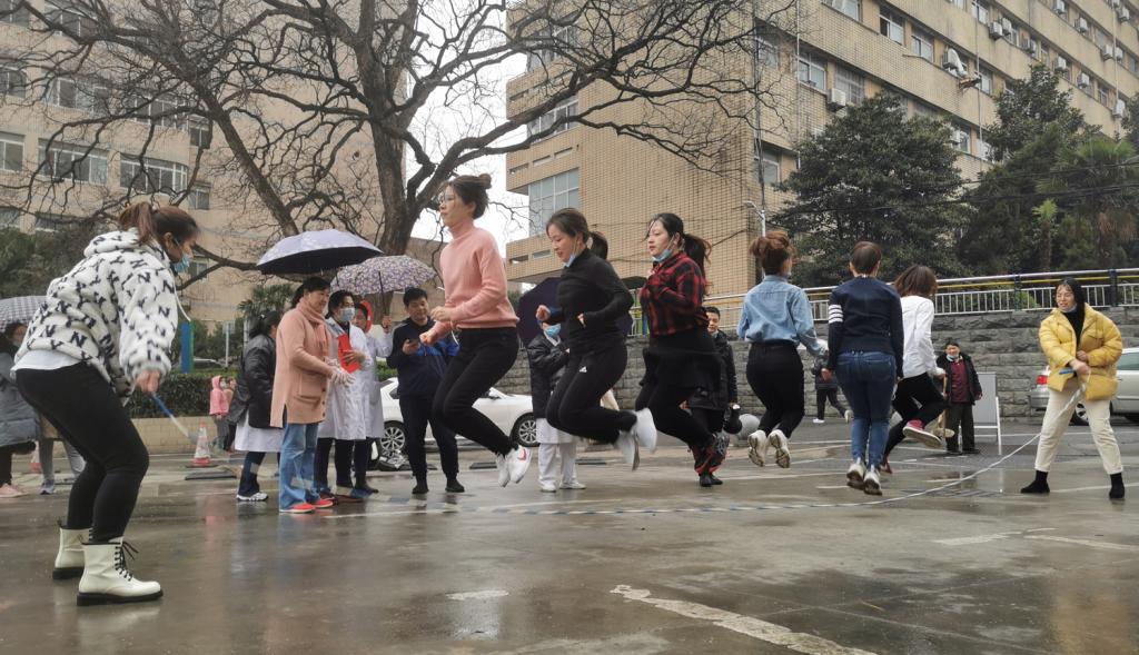 此次比赛分为女子集体跳绳和女子拔河两项,采取单循环淘汰制。午后的潇潇春雨没有熄灭巾帼们高涨的热情,大家早早换上运动装备来到赛场列队,展现出极强的集体荣誉感。