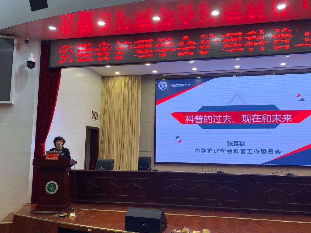 会议特邀中华护理学会副理事长张素秋予以授课及点评,医院副院长、高新院区院长孙国平致辞,安徽省护理学会武义华理事长、张建凤副理事长、王国琴副理事长出席,本次交流会由安徽省护理学会秘书长李志菊,安医大一附院护理部主任、安徽省护理学会常务副秘书长胡少华主持。会议上我省护理科普教育基地负责人、骨干汇报科普工作进展,我院相关工作由关节外科护士长甘玉云汇报。医院部分护理科普工作者参与会议。