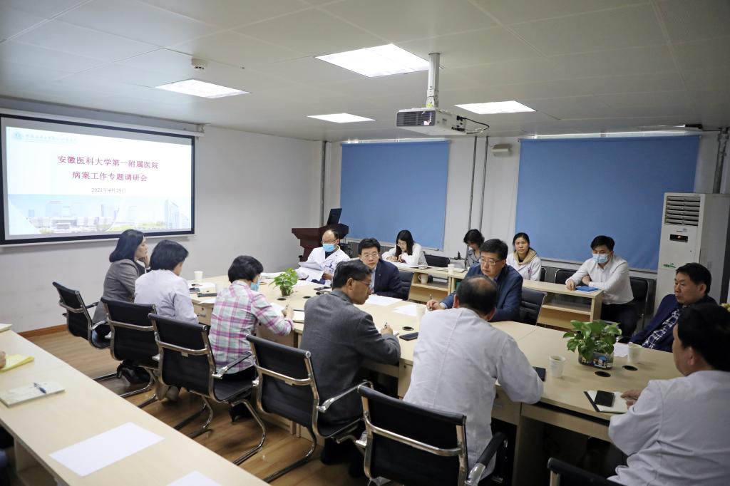 4月29日下午,院党委书记金宗祥、常务副院长李家斌、副院长费广鹤赴实验中心楼五楼病案管理科调研。院办、医务处、人事处、护理部、计财处、门诊部、信息中心等相关部门负责人参加了调研。