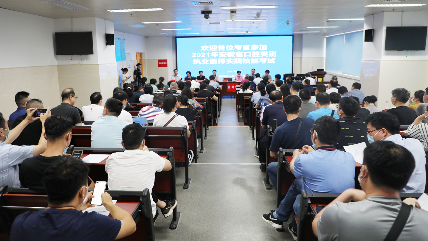 6月19日上午,2021年安徽省口腔类别执业医师实践技能考试在我院高新院区科教综合楼临床技能培训中心正式拉开帷幕。省卫健委和医院高度重视考试工作,在开考前一天,省卫健委医政医管处副处长温耀斌、张洁主任一行专程来到考场,巡查考试筹备工作,常务副院长李家斌及相关部门负责人、考试基地首席考官陪同巡查。