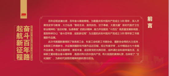 职工书画摄影展是我院庆祝建党100周年和第八届职工文化艺术节的重要内容之一,由医院党委主办,工会承办,党委宣传部、离退休党总支协办,旨在进一步凝聚广大职工听党话、跟党走的思想共识,展现当代安医人昂扬向上的精神风貌和团结奋进的时代风采,激励广大职工积极投身医院“十四五”事业发展,为创建国家医学中心和国家区域医疗中心作出新的更大的贡献。