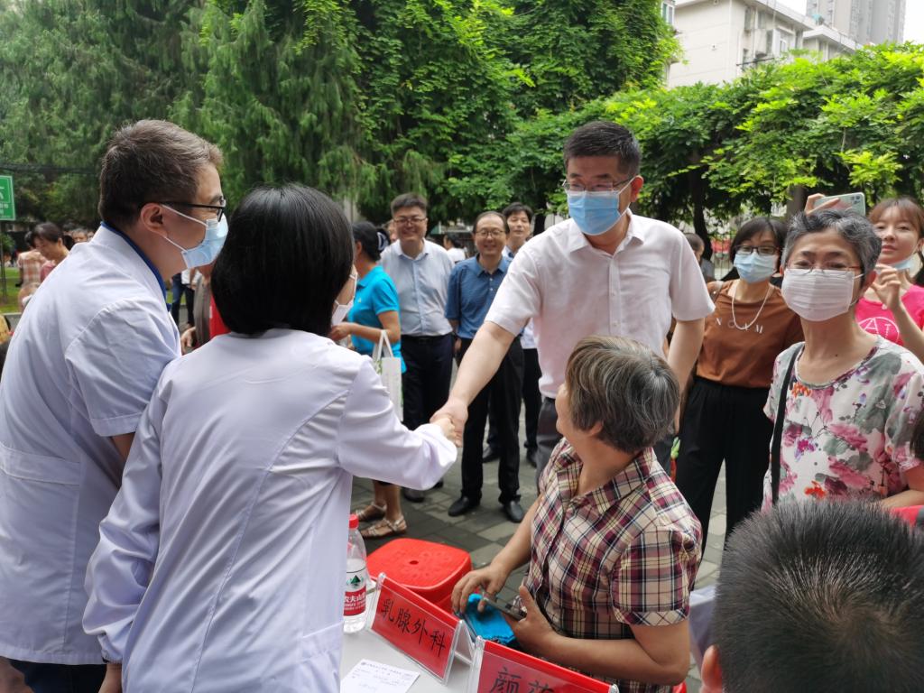 “七一”来临之际,为深入推进党史学习教育,积极响应“我为群众办实事”号召,以实际行动庆祝建党100周年。6月26日上午,安医大一附院在蜀山区西园街道社区卫生服务中心举行“学史力行 精医康民”安医健康服务体系大型义诊活动。医院党委书记金宗祥、安徽医科大学医院管理处副处长张冬梅赴义诊现场参观指导。安徽电视台新闻联播、合肥电视台新闻频道对此次义诊活动进行了采访报道。