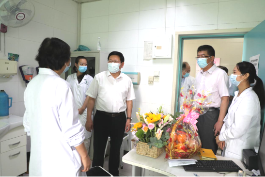 在绩溪路妇产科门诊,顾家山一行亲切看望魏兆莲,对其多年来在医疗、教学、科研等方面的辛勤付出和取得的突出贡献表示衷心感谢和充分肯定,勉励全院广大教师持续弘扬高尚的医德医风、师德师风,培养更多大国良医,为大学和医院进一步落实“教书育人”“治病救人”根本任务作出更大贡献。