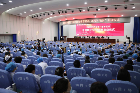 9月8日下午,在医院内科医技楼四楼会议中心举行“医用耗材智慧物流管理(SPD)项目”启动仪式。院党委书记金宗祥出席仪式并讲话,党委副书记、副院长刘全礼,常务副院长李家斌,纪委书记陈宏凯,副院长费广鹤、王珩及国医科技董事长丁贞虎参加了本次启动仪式。仪式由副院长王珩主持。
