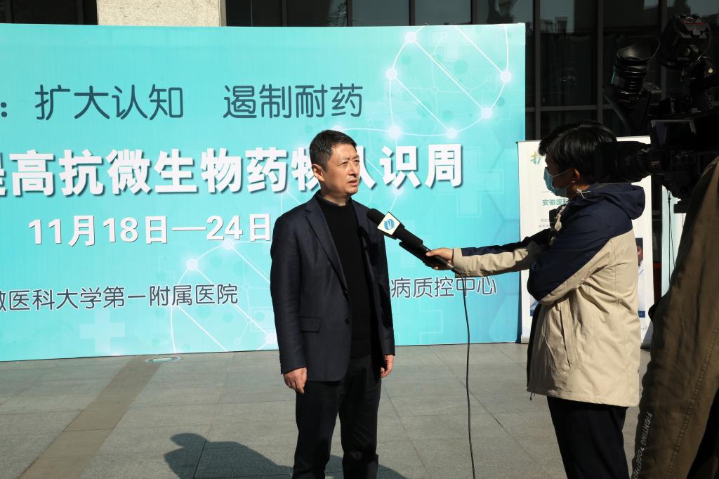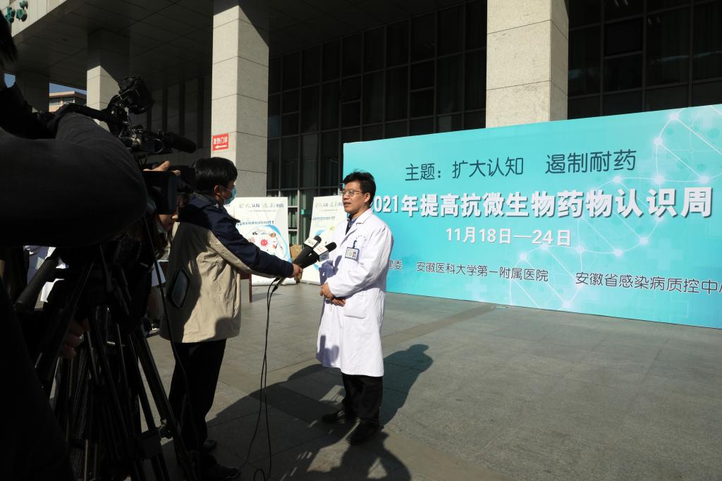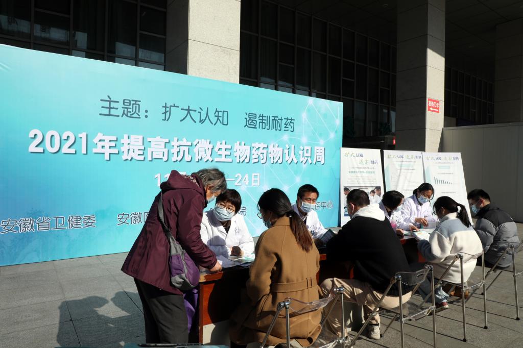 11月24日上午,由安徽省卫生健康委主办,我院、安徽省感染病质量控制中心和安徽省细菌耐药监控中心承办的“2021年提高抗微生物药物认识周”义诊宣教活动在绩溪路门诊广场举办。今年的活动主题是“扩大认知,遏制耐药”。省卫生健康委医政医管处处长马勇,我院常务副院长、感染科专家李家斌出席活动并致辞。医务处、感染科、药剂科和检验科等相关科室人员及研究生参加了此次活动。