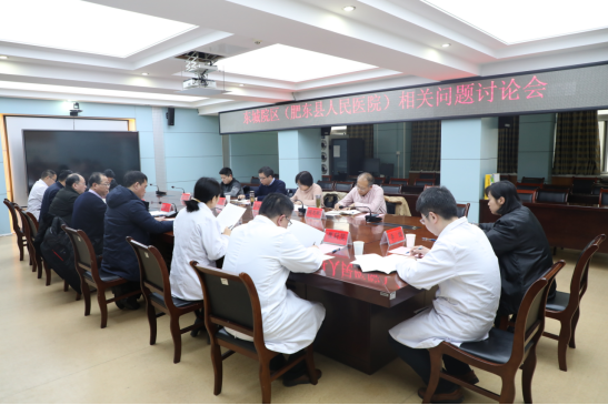 2月11日下午,医院召开东城院区(肥东县人民医院)相关问题讨论会,会议在行政办公楼五楼第二会议室举行。院党委副书记、副院长刘全礼,相关职能部门负责人及东城院区部分党政领导班子成员参加了此次会议。会议由医务处副处长高潮兵主持。