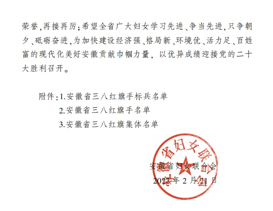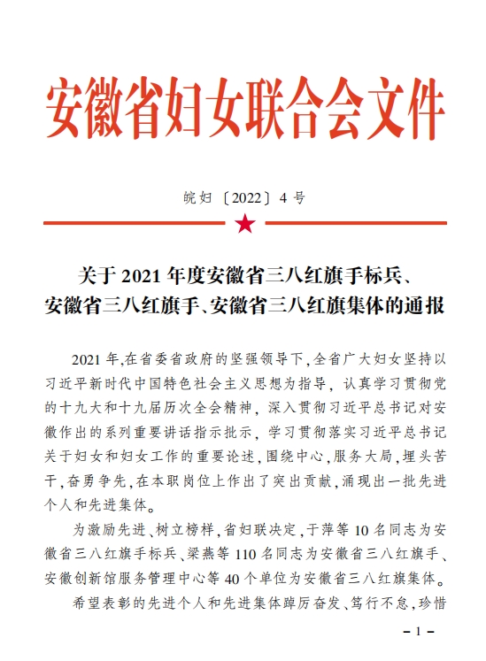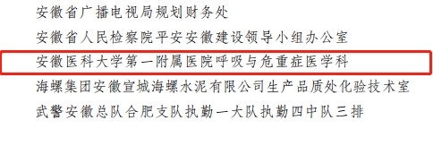 近日,安徽省妇女联合会发布通报,我院呼吸与危重症医学科荣获安徽省三八红旗集体荣誉称号。