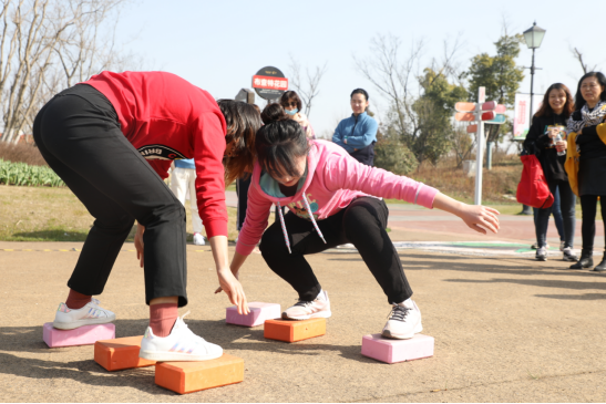 3月4日时值农历2月初2,春日融融,生机盎然。活动现场,女职工们迈着轻快的步伐,沿着指定路线,绕行湖畔花园。广场草坪上,女职工组队展开了一场精彩的趣味运动会,“毛毛虫寻宝”彰显团队精神,“搬石头过河”新鲜有趣,传统的踢毽子、跳绳更勾起了儿时的温暖回忆。整个踏春过程,充满了欢声笑语。