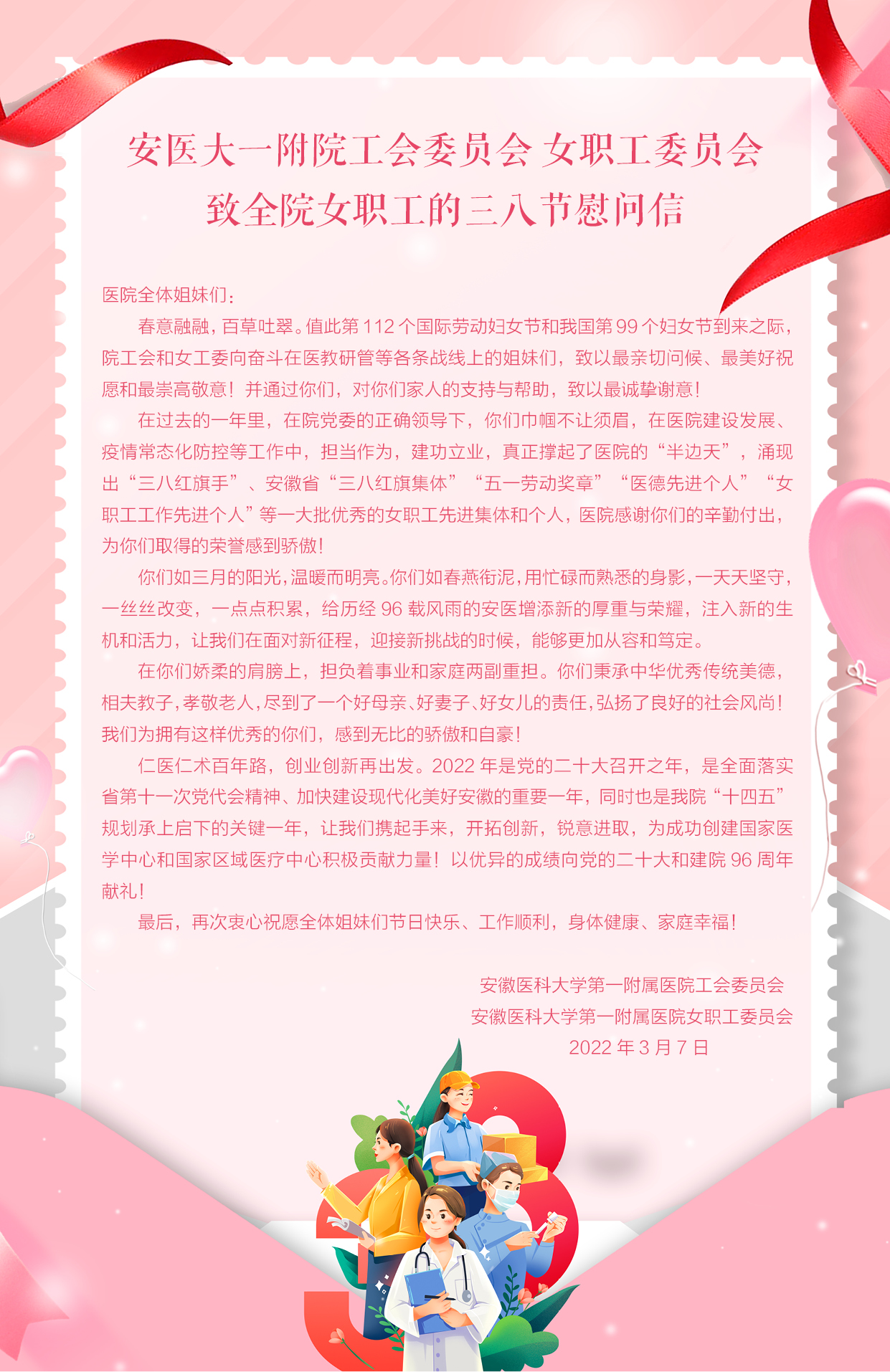 致全院女职工的三八节慰问信