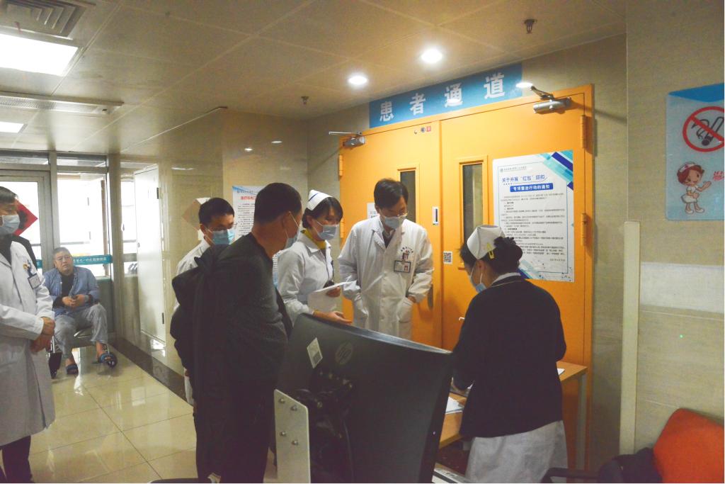 陈旭林一行先后至院区各大门、门急诊、各临床科室进行现场督查,根据院区疫情防控管理要求,认真检查院区入口管理、预检分诊、门急诊管理、病房管理、陪护及探视管理等情况。陈旭林对疫情防控一线人员的辛勤付出给予了充分肯定,同时也点明并记录了存在的问题,提出改进意见,予以细节指导,要求落实整改。