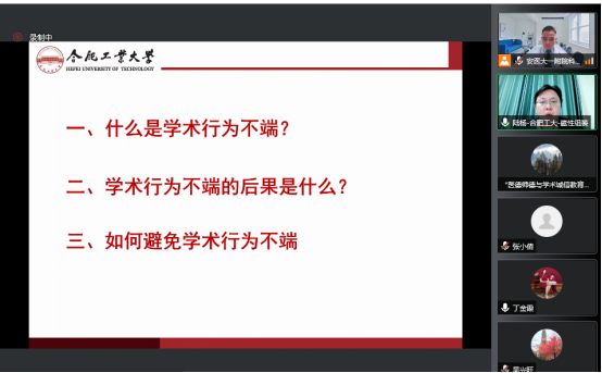 为进一步加强科研诚信建设,增强科研人员的科研诚信和学术道德意识,营造良好科研环境,根据医院“医德师德与学术诚信教育月”活动部署,3月31日下午,科研处邀请合肥工业大学化学与化工学院陆杨教授作题为《谨防学术不端,严守学术诚信》的科研诚信专题线上讲座,医院各科室主任、住院总、新入职博士以及教研室主任参加了讲座。本次讲座由科研处副处长樊松主持。