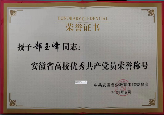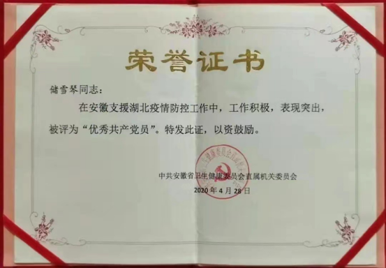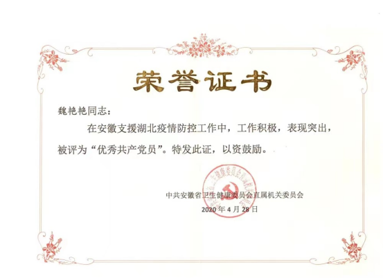 因成效显著,2020年感染病科获新冠肺炎疫情防控先进集体,党支部书记郜玉峰获安徽省委教育工委“优秀共产党员”,支部成员李家斌获安徽省新冠肺炎疫情防控先进个人,周翠梅护士长获“安徽省五一劳动奖章”,唐芳护士长获安徽省“优秀共产党员”和安徽省新冠肺炎疫情防控先进个人,储雪琴、魏艳艳获安徽省卫健委“优秀共产党员”,薛继华获“安徽省五一劳动奖章”。
