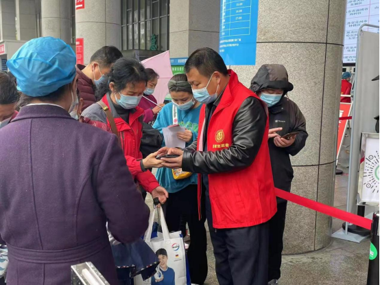针对近期门诊患者防疫管控、人员排查、信息登记等工作压力陡然增大的情况,3月31日,机关党总支迅速集结起一支党员志愿服务队,总支七个支部闻令而动、尽锐出战。支部书记带头值守服务一线,志愿者每天在早上7点半和中午1点半提前到岗,现场核验患者安康码、行程码,协调就诊秩序,为守护全体就诊群众和医护人员生命健康筑牢坚实的防线。