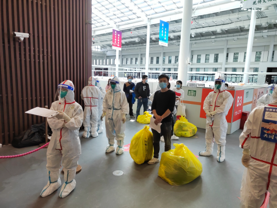 首批出舱患者人数多,任务重,4月12日当日,院区院长陈明卫、综合保障部部长王晓虎、医疗工作部部长李鹏、护理组组长韩江英、物资组组长张慧、后勤组组长费永秀、院感组组长李蕊等提前赶至安医大一附院方舱院区,再次模拟患者出舱流程,排查安全隐患。本着定人定岗定责的工作原则,患者经过责任护士-引导护士-出口护士的身份核对和有序交接,在出口再次接受医护人员的共同核对,方可出舱。