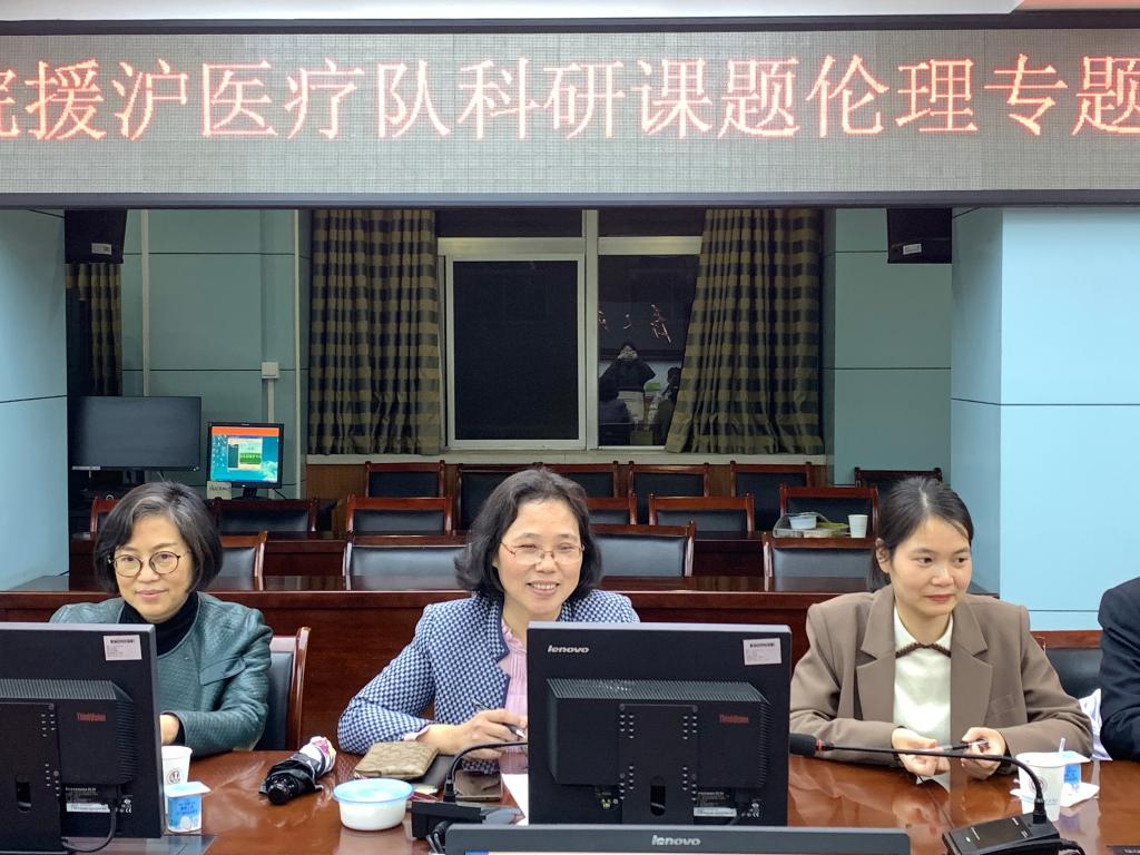 副院长、主任委员王珩首先代表医院伦理委员会向援沪医疗队致以崇高敬意和亲切慰问,并对援沪医疗队在繁重的抗疫工作中坚持开展临床研究表示赞赏。针对本次伦理审查专题会议,王珩强调伦理审查是开展生物医学研究的充分必要条件,必须要遵循技术和伦理规范,保护研究对象的健康权益,维护研究对象的生命尊严,严格按照有关法律法规和伦理准则开展科学研究和医疗活动。