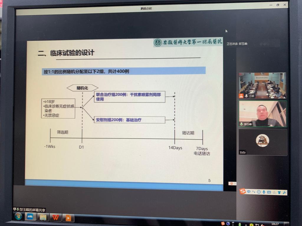 会上,郜玉峰就喷雾剂治疗无症状感染者课题的研究背景、试验方案和知情同意等方面作了详细汇报,全体委员认真听取汇报。全国人大代表刘荣玉、安徽大学文学院院长吴怀东、医院烧伤科主任徐庆连分别就受试者的招募、临床试验设计、知情同意的过程和内容、受试者的医疗和保护、隐私和保密等伦理方面问题提出了审查意见,与会委员展开了热烈讨论,并形成了对该课题修改完善的建议。