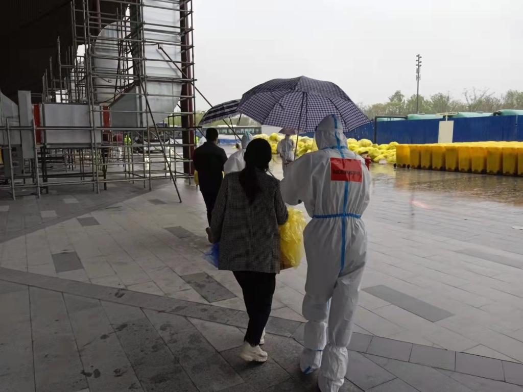 4月13日清晨,因担心出舱患者的雨具不够,院区护理人员将自己雨伞带到医院。护理组也提前守候在院区,协调各岗位人员,对出舱流程和重点环节进行把控,确保所有患者正确无误、安全有序地出舱。最终,386名患者均按疫情防控要求依次有序出舱。上车途中恰逢大雨,院区工作人员撑伞贴心护送,受到出舱患者的一致好评。