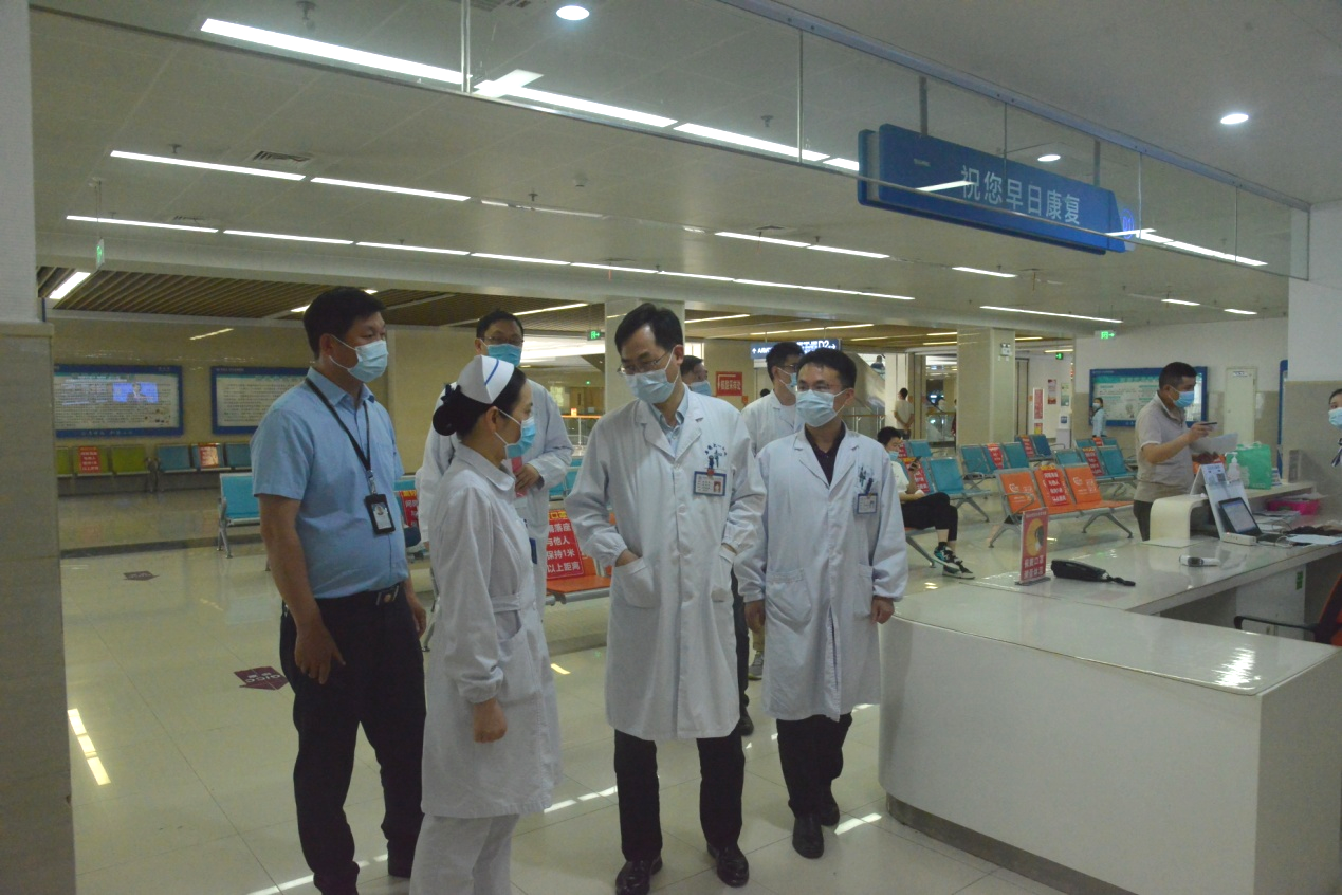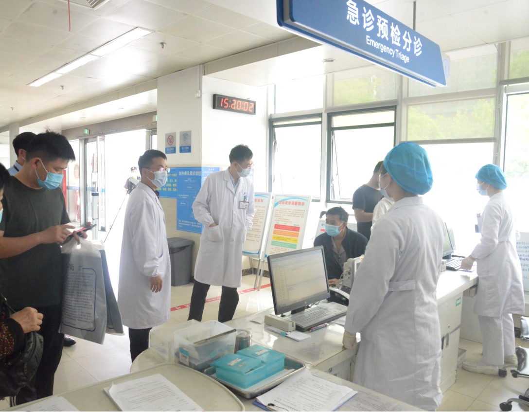 陈旭林实地走访了院区住院楼6号楼、院区南北门、门诊楼、核酸采集点、急诊科、预检分诊、儿科门诊等区域,集中调研了院区入口安康码、行程码双码查验、门急诊患者就诊流程、核酸检测、急诊核酸抗原检测、发热患儿就诊流程等情况。陈旭林与急诊核酸抗原检测的一线工作人员进行了亲切交流,对于急诊队伍在疫情防控期间的辛苦付出给予了充分的肯定。
