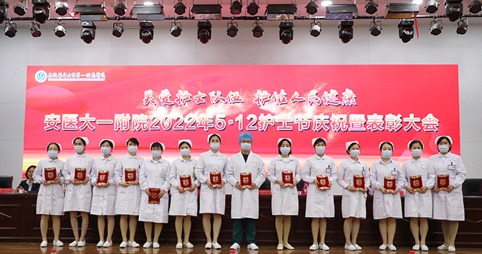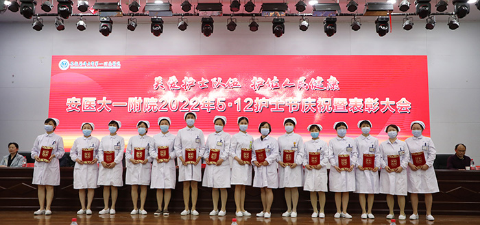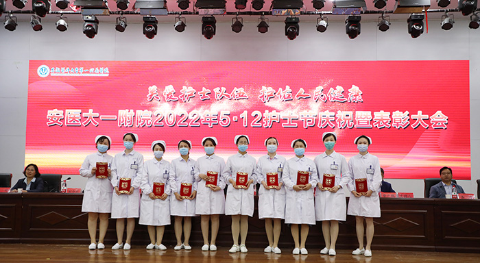 5月11日下午,医院在内科医技楼会议中心召开2022年“5.12”国际护士节庆祝暨表彰大会。安徽医科大学党委书记顾家山、安徽省卫生健康委员会医政医管处副处长彭玉池、安徽省护理学会理事长武义华出席会议,院领导金宗祥、刘全礼、费广鹤、王珩、李琮、吴晓莉、谢峰和各职能处室负责人、护士长及护士代表等参加本次活动,活动由副院长费广鹤主持。