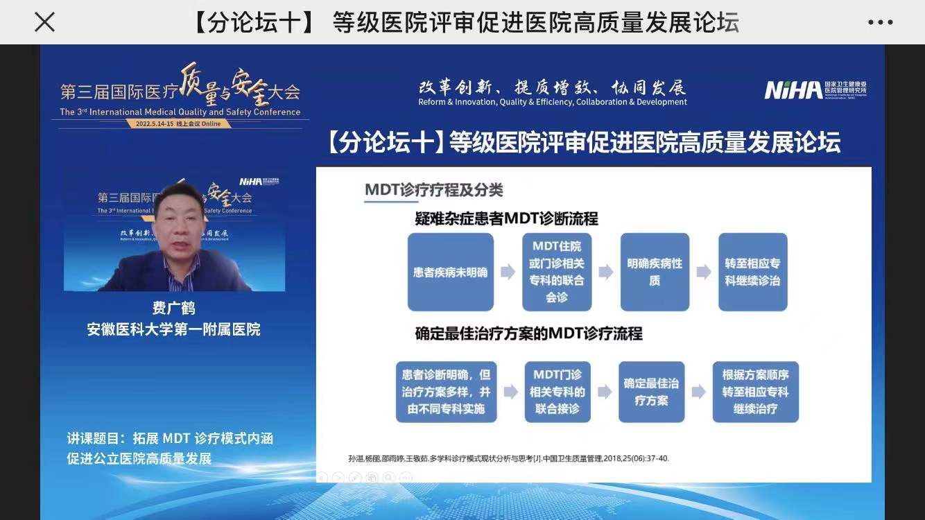 2022年5月14-15日,第三届国际医疗质量与安全大会在线上召开。大会由国家卫生健康委医院管理研究所主办、安徽省卫生健康委员会支持、安徽医科大学第一附属医院承办。