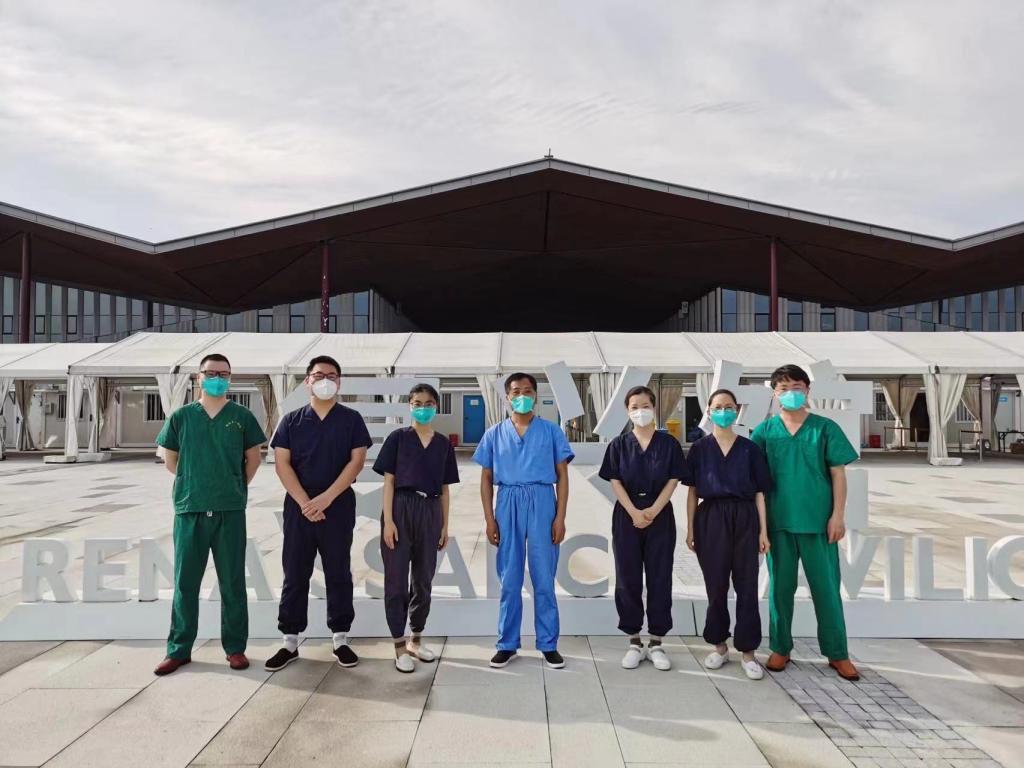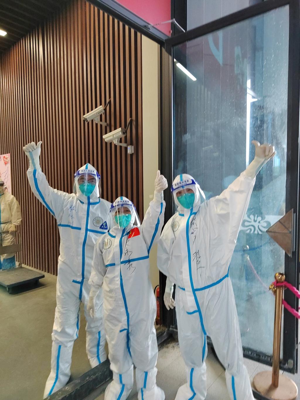 晚上7时许,医疗队员们和专家组成员顺利抵达隔离酒店。党委书记金宗祥,党委委员、正处级组织员丁长明,以及相关职能部门人员现场迎接队员回家。