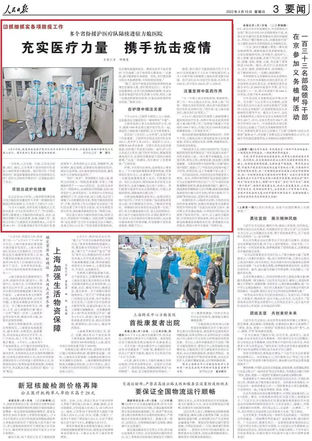 在安徽省援沪医疗队组织的疫情防控知识竞赛中,安医大一附院方舱院区获“团体特等奖”,10名队员获“个人标兵”称号。医疗队相关工作经验、先进典型等受到国家级、省市级媒体高度关注,《人民日报》在要闻三版对院区工作作了专题报道,多家媒体开设专栏报道医疗队医患暖心故事,取得了良好的社会传播效果。