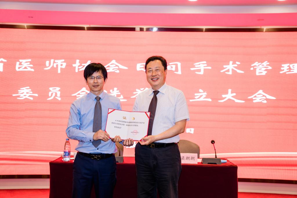 5月27日下午,安徽省医师协会日间手术管理专业委员会成立大会在合肥成功召开,来自全省16个地市31家医疗卫生机构的近50名代表参加了此次会议。安徽省医师协会会长梁朝朝教授出席成立大会,会议由秘书长颜雨春教授主持。按协会章程、经民主选举产生日间手术管理专业委员会第一届委员会委员71人,其中常务委员23人、副主任委员6人、主任委员1人。安徽医科大学第一附属医院麻醉科主任刘学胜教授当选为首届主任委员,我院医务处副处长汪安勇和日间手术中心主任陆姚当选为常务委员,口腔科主任后军和日间手术室护士长张静当选为委员。选举结束后,由安徽省医师协会会长梁朝朝对新任主任委员及副主任委员颁发了证书。