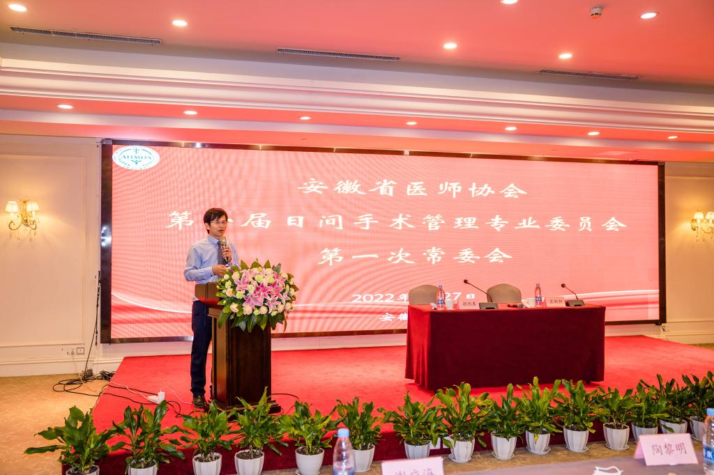 安徽省医师协会会长梁朝朝教授代表省医师协会致辞,向新当选的委员、常务委员、副主任委员、主任委员表示热烈祝贺。梁朝朝对新成立的日间手术专委会提出几点要求:一是搭建好平台,日间手术涉及临床学科多,要给各学科同仁提供良好的学习、交流场所;二是规范组织建设,加强专委会内部管理,尤其是财务规范和学术行为规范;三是专委会要创新理念,学习国际国内前沿新技术,学以致用,改进并提高安徽省医疗单位医疗服务流程和服务质量。他希望新一届专委会能够在刘学胜主委的带领下,在全体委员的共同努力下,为促进安徽省日间手术事业发展贡献自己的力量,为实现健康安徽、健康中国做出贡献。