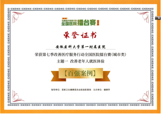 4月29日,由国家卫生健康委医政医管局指导、健康界主办的第七季改善医疗服务行动全国医院擂台赛,历经案例征集、专家评选两个阶段,各主题百强案例正式揭榜。由医院门诊部报送的案例“莫道桑榆‘皖’杏林霞满天——改善老年人就医体验案例”荣获第七届改善医疗服务行动全国医院擂台赛(城市类)主题一改善老年人就医体验百强案例,“聚焦多系统多器官疾病 创新多部门多学科诊疗模式”案例荣获第七届改善医疗服务行动全国医院擂台赛(城市类)主题五推广多学科诊疗模式百强案例。