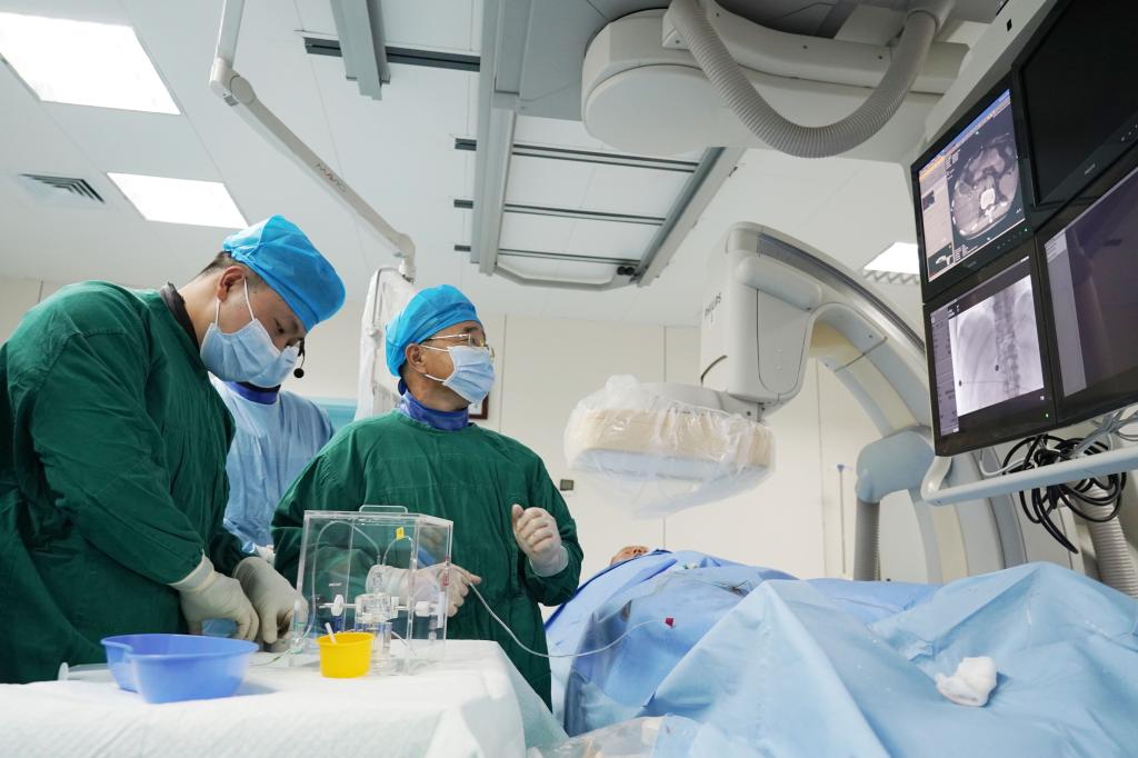 钇[90Y]树脂微球就像攻克肿瘤的一枚可精准投放的“超级核弹”,前期通过精准定位,将钇[90Y]树脂微球注入肝脏血管,释放高能量β放射线,能近距离杀灭肿瘤细胞,对正常肝组织和周围环境几乎无影响。该手术在局麻下进行,具有创伤小、恢复快、疗效好的优势。同时还可与生物、免疫、靶向等其他综合治疗方式联用,为广大肝脏恶性肿瘤患者带来更为显著的临床获益。