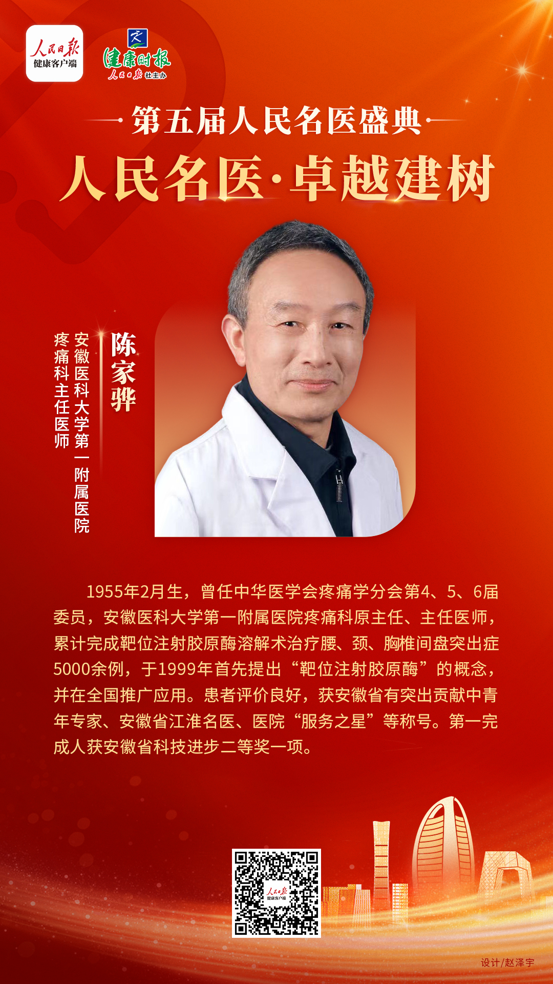 8月16日,第五届人民名医盛典(原国之名医盛典)举行,我院疼痛科陈家骅教授荣获“第五届人民名医·卓越建树”荣誉称号。