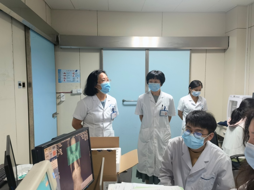 8月16日,副院长王珩一行赴绩溪路院区医技部门检查医疗设备网络安全,信息中心、物资设备处相关人员陪同。