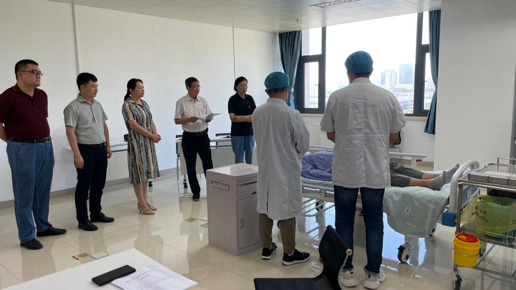 本次教学查房竞赛分为初赛和决赛两个阶段。8月6日,初赛在高新院区临床技能培训中心举行,每名参赛教师带领2名实习同学及1名标准化病人组成一队,现场完成病例汇报、床旁指导、病例分析、理论拓展等查房任务。医院选派资深考官,组成教学查房考核专家组,现场考核评分,共遴选出6名教师进入决赛。决赛全过程安排专业人员录制,统一组织评审专家,本着“公平、公正、公开”的原则,严格按照《安徽医科大学第一临床医学院(第一附属医院)教学查房规范》对教学查房进行集中评审。
