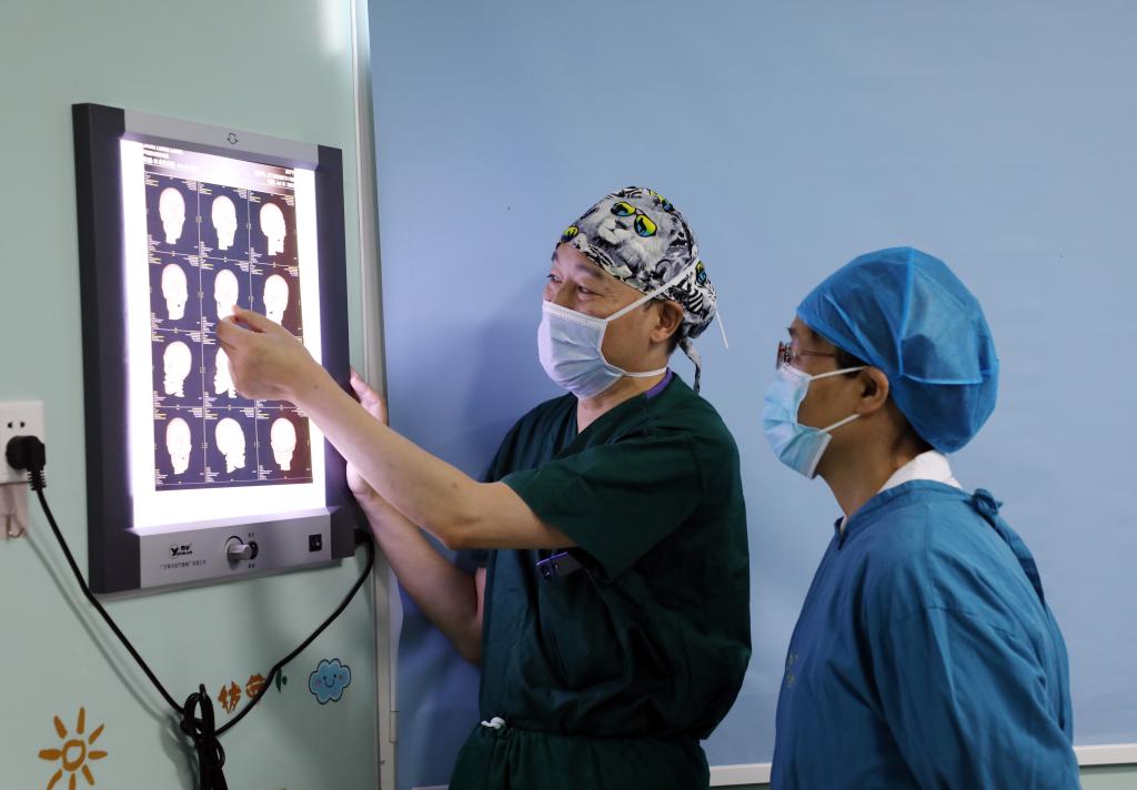 经过术前讨论,后军、薛浩伟主任医师团队决定在MR技术、3D打印技术以及计算机辅助导航技术的辅助下对该患者行面部多发性复杂性面部骨折骨折切开复位内固定术。MR技术可将全息影像模型移到颌面部移位骨折片上,并叠加显示在虚拟的物理空间上,实现了精准的手术治疗方案制定。经过术前模拟、术前精准设计、术中适时定位,在胡玉坤副主任医师、凤麟飞主治医师等口腔颌面外科医护人员及麻醉、护理人员的共同努力下,患者面部骨折断端精准复位,恢复其原有的生理功能、大大改善了面容美观。术后,患者恢复良好。