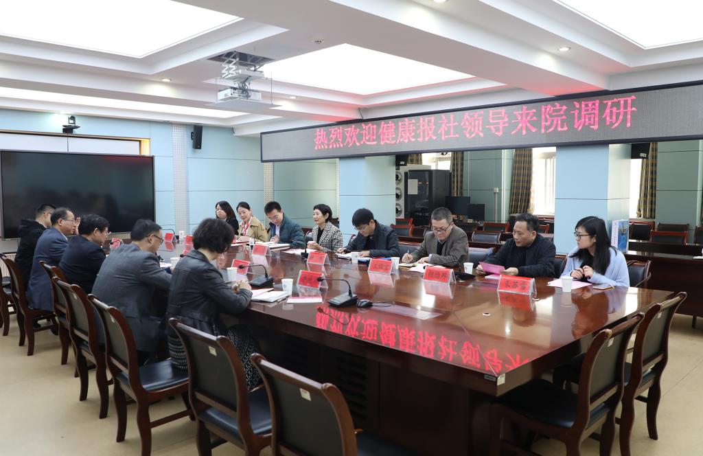 11月16日上午,健康报社副社长张蕾一行来院调研采访。校党委副书记、院党委书记谢瑞瑾,省卫健委宣传处处长王俊宝、二级调研员胡德邦,院党委副书记、副院长刘全礼,正处级组织员丁长明等陪同调研。