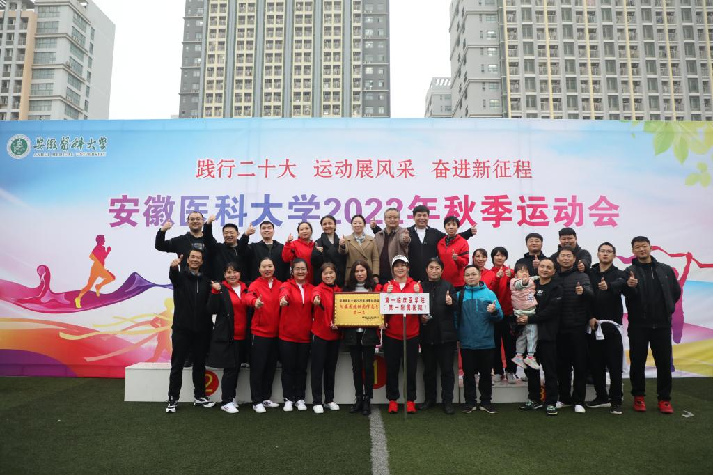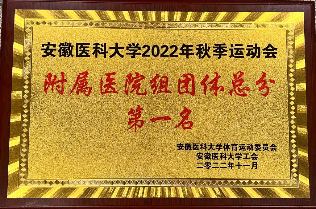 11月17日至19日,安徽医科大学2022年秋季运动会在校本部体育场举行。由来自一附院医疗、护理、教学、科研、管理等各条战线的60余名职工组成的一附院代表队,参加了本届运动会全部2个大类30个项目的比赛。经过三天的激烈角逐,打破赛会纪录3项(女子1500m、男子乙组800m、女子自行车慢骑),最终以总成绩176分的优异战绩,力压教工组各支代表队,获得附属医院组团体冠军,连续四次举起了校运动会团体第一名的奖牌。