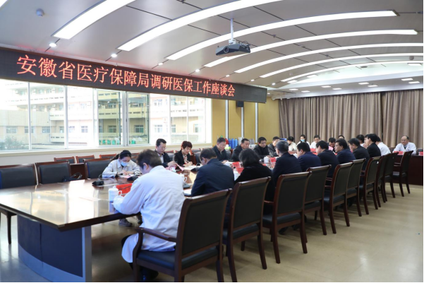 11月24日下午,安徽省医疗保障局党组书记、局长金维加,党组成员、副局长汪和平及相关处室领导一行6人莅临我院,开展医保相关工作调研。校党委副书记、院党委书记谢瑞瑾,院长孙倍成,常务副院长李家斌,纪委书记陈宏凯,副院长费广鹤、王珩,副院长、高新院区院长陈旭林,总会计师谢峰,院长助理喻荣辉,党委委员申才良参加会议,相关职能处室负责人和部分临床专家参加会议。