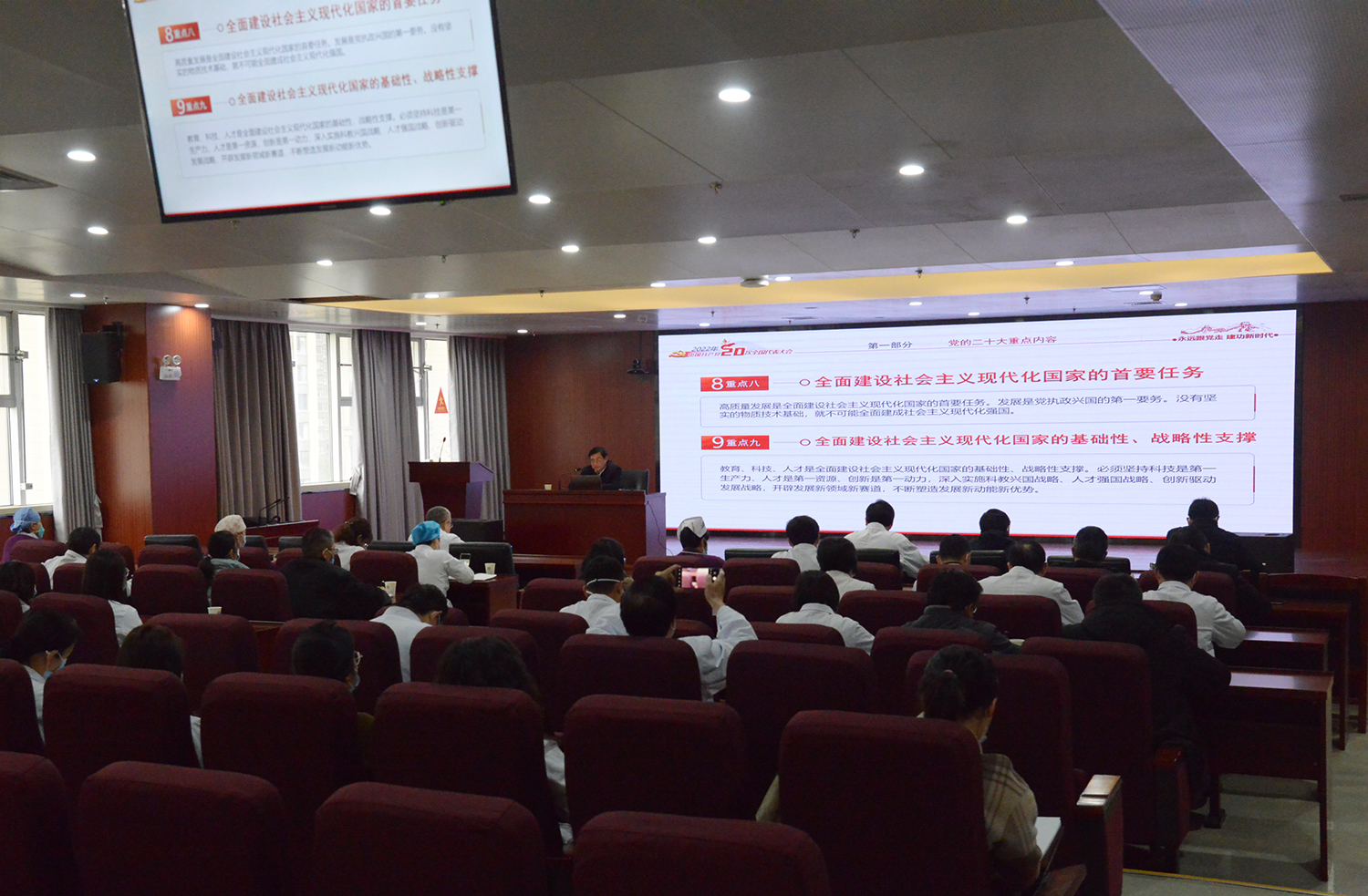 高新院区在院领导、行政副科以上干部、党支部书记及部分支委等聆听了宣讲。大家纷纷表示,宣讲报告主题明确、内容丰富,将在今后的工作中,以党的二十大精神为指引,坚定听党话、跟党走,以更加奋发有为的精神状态为医院高质量发展贡献力量。