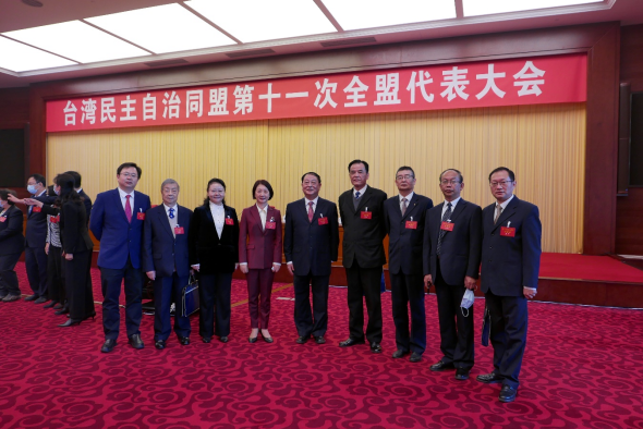 (参加台湾民主自治同盟第十一次全盟代表大会的安徽省代表。左起:张光、吕英斌、王阳、王宇靖、林敏、陈清海、江良、刘杨、陈耿。)