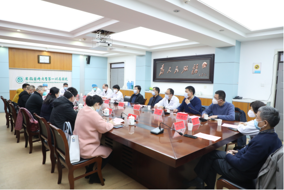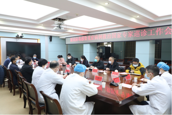 1月13日,由省卫健委医政医管处副处长彭玉池,上海交通大学附属瑞金医院ICU主任陈德昌,复旦大学附属华东医院ICU副主任吴志雄,安徽省立医院ICU主任潘爱军以及省卫健委相关工作人员组成的专家组莅临我院,就新冠病毒感染重症病例救治工作进行现场调研指导,常务副院长李家斌、相关职能处室及临床科室负责人参加会议。
