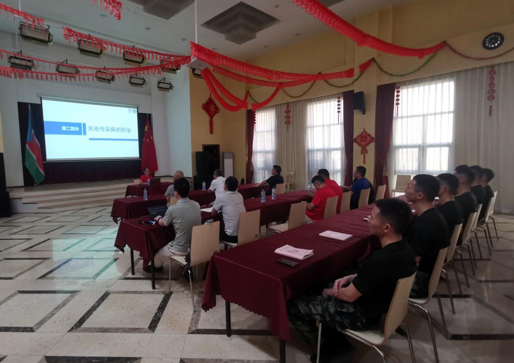 感染科苏倩主任医师首先介绍了我院的基本概况,同时也介绍了安医大一附院与南苏丹的渊源:从2012年牵头组建第一批援南医疗队,到2020年带领首批援非抗疫医疗专家组赴南苏丹、几内亚进行抗疫支援;从2021年与南苏丹朱巴教学医院签订对口医院合作机制建设项目,到2022年再次作为组队单位选派了7名队员参与卫生援外工作。十年来,安医大一附院为南苏丹医疗卫生事业的发展和中南友谊做出了巨大贡献。苏倩结合南苏丹现况,按照传播途径的不同,从虫媒传播、消化道传播、呼吸道传播和血液、体液传播4个方面,介绍了南苏丹常见传染病的概况及防治措施。着重介绍了疟疾的传播、治疗、耐药和预防措施,并且结合实际生活环境给出了具体建议。同时苏倩也结合在南四个多月的临床工作,指出了南苏丹在传染病诊断和治疗方面存在的问题,并表示会依托中非对口医院合作机制建设项目,提高传染病诊疗水平,为促进当地公共卫生事业的发展贡献安医力量。