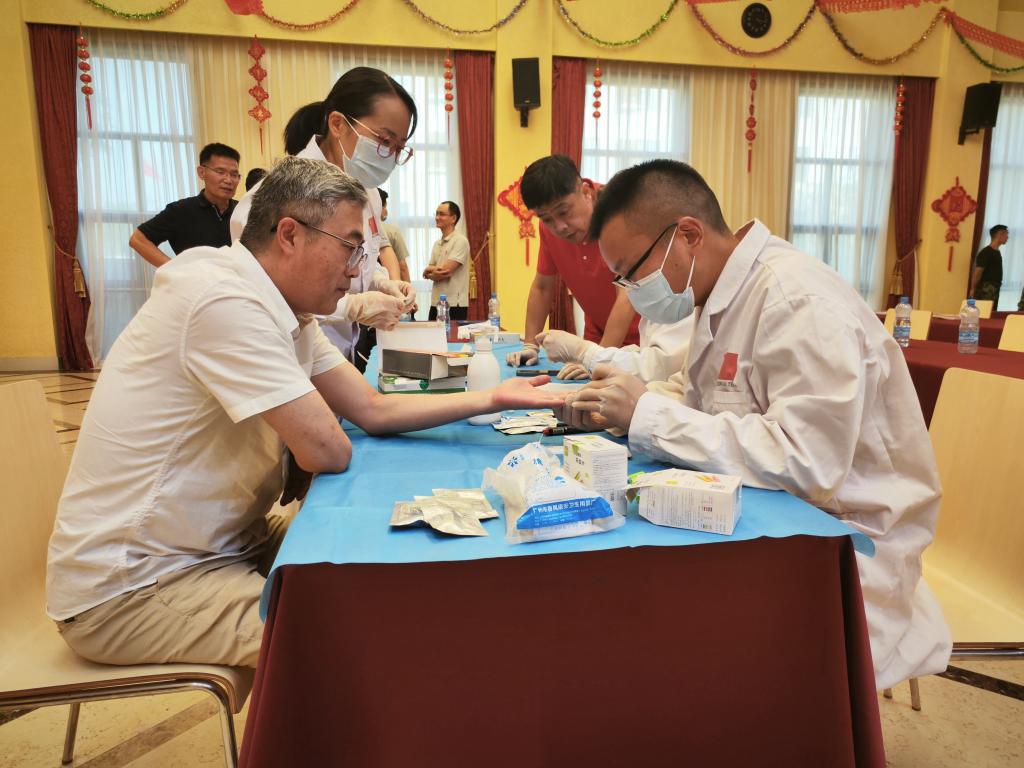 讲座结束后,检验科陈鹤和麻醉科余永奇医生,为大使馆全体人员开展了疟原虫抗原筛查,并结合检测结果进行了专业、耐心、细致的讲解。
