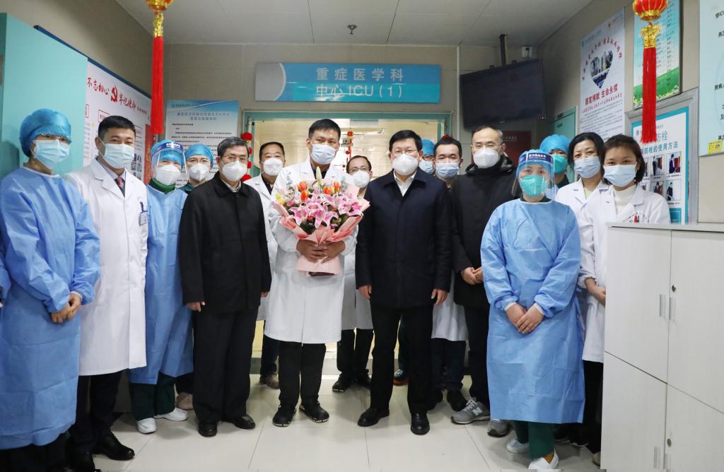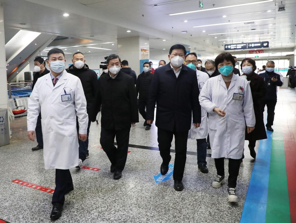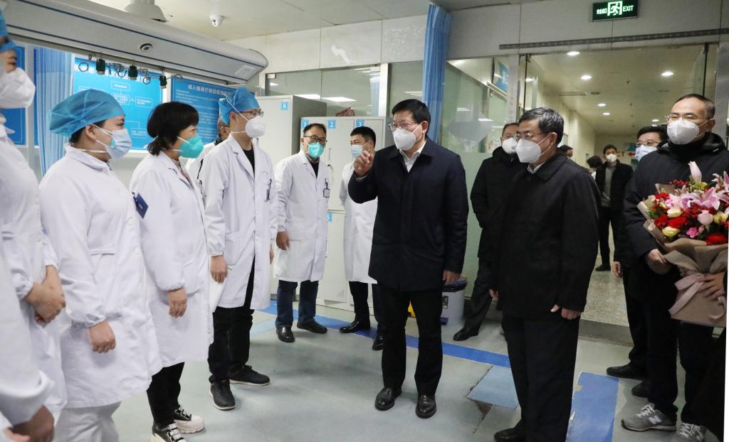 顾家山书记一行先后走访慰问了急诊抢救室、急诊留观室、急诊科、重症医学科等一线医务人员,详细了解了现阶段科室的诊疗和救治工作,对他们在新冠疫情救治最严峻、最困难的时候主动担当,长时间高强度、超负荷工作表示衷心感谢,对一线医护人员始终坚持人民至上、生命至上,以医者仁心、精湛医术护佑患者健康的行为给予高度赞扬。