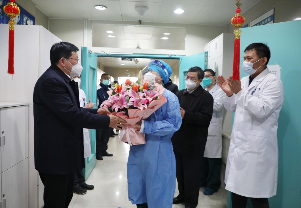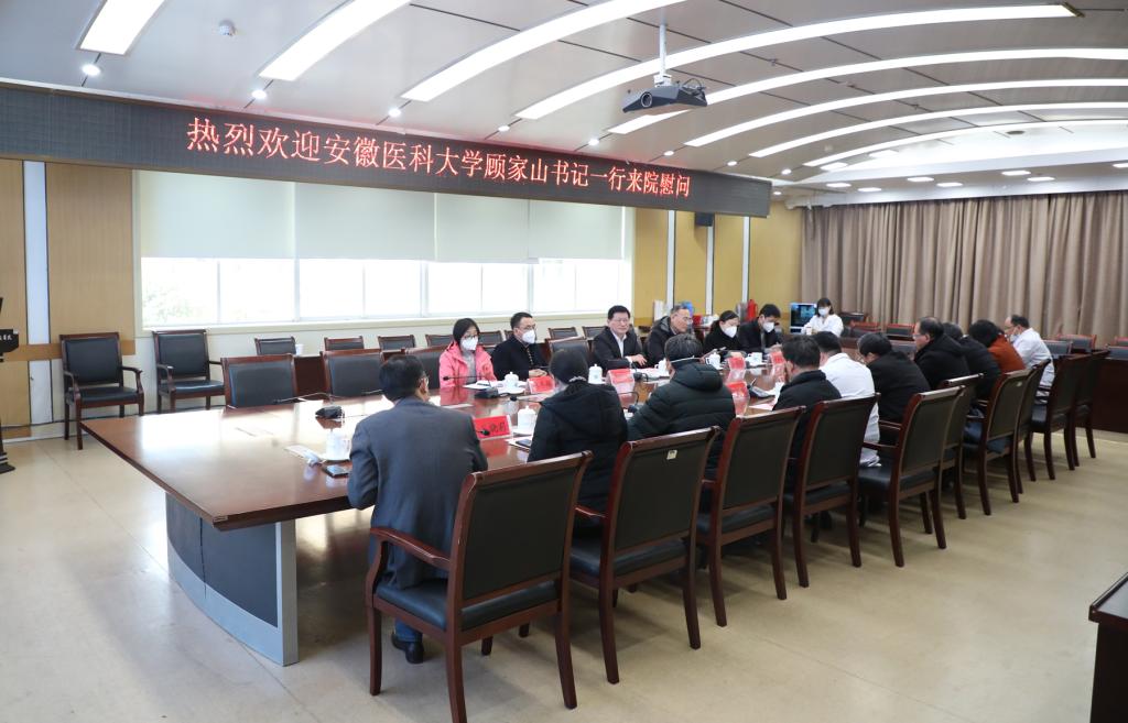 慰问结束后,顾家山一行与院领导班子进行交流座谈。顾家山指出,这一年来,大家从年头忙到年尾,经历了多次大战大考,承受了巨大风险考验,代表学校向全体医务人员表示衷心的感谢。
