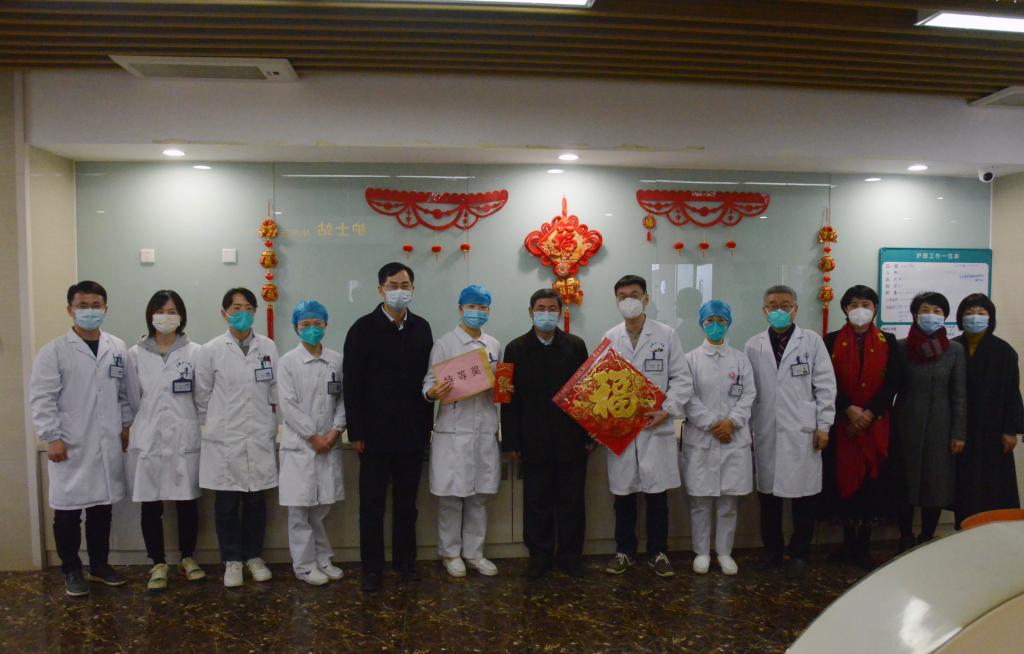 1月22日(大年初一)上午,谢瑞瑾、孙倍成、刘全礼、李家斌、费广鹤、王珩、吴晓莉、陈旭林、谢峰等院领导深入一线,看望慰问节日期间坚守岗位的师生医护员工,为大家送上新春祝福和节日问候。