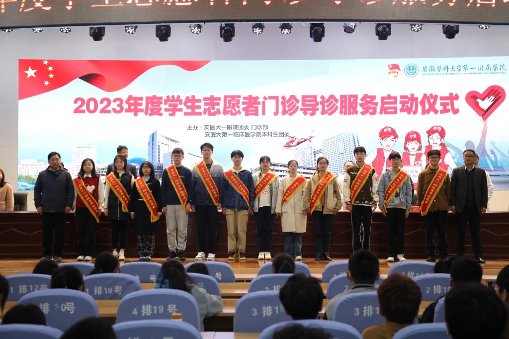 4月6日上午,医院在会议中心举行2023年度学生志愿者门诊导诊服务启动仪式。院党委副书记、第一临床医学院学生党总支书记李琮,院党委委员、正处级组织员丁长明,第一临床医学院学生党总支副书记沈慧,医院门诊部负责人汪安勇,团委书记王晓虎,第一临床医学院本科生团委负责人程悍等出席会议。第一临床医学院辅导员老师及600余名学生志愿者参加会议。会议由团委书记王晓虎主持。