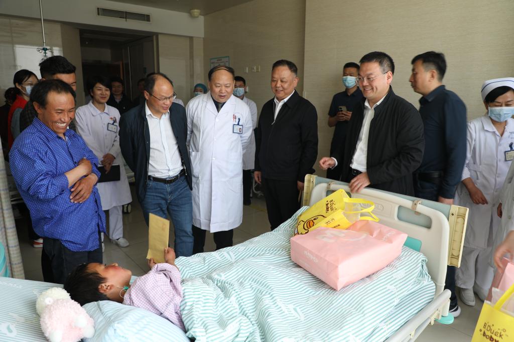 邵东华对患儿的康复表示祝贺,对医护人员的精心救护表示感谢。他指出,一个党员就是一面旗帜,一个支部就是一座堡垒,我院前期选派的筛查医疗队不畏艰苦,积极开展工作,体现了安徽省医务人员的整体形象,希望今后继续加强交流,进一步提升西藏山南市医疗水平。