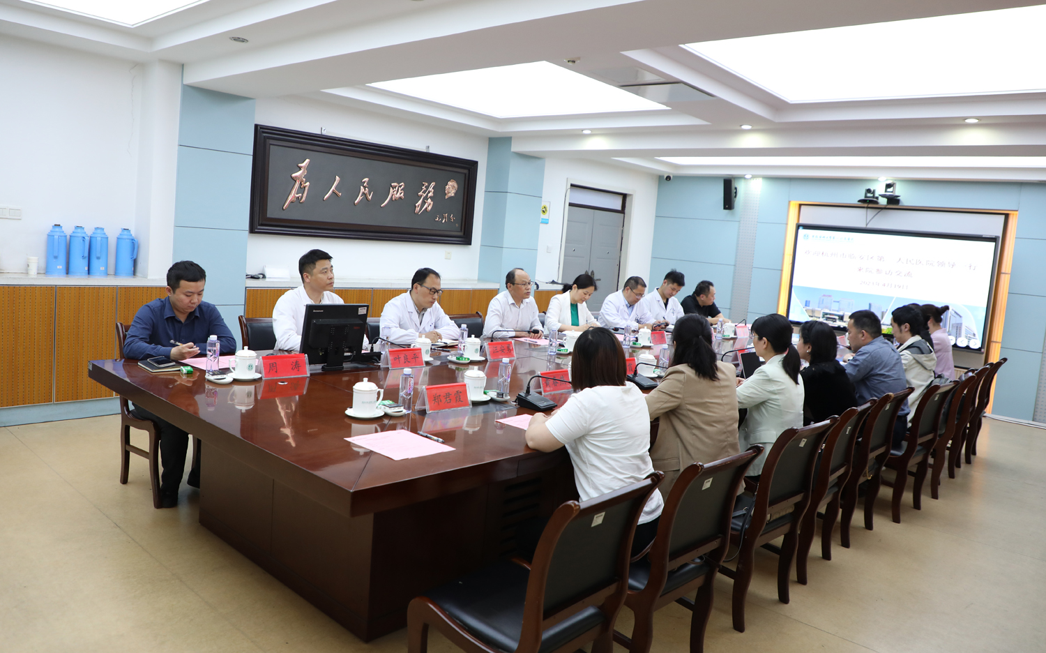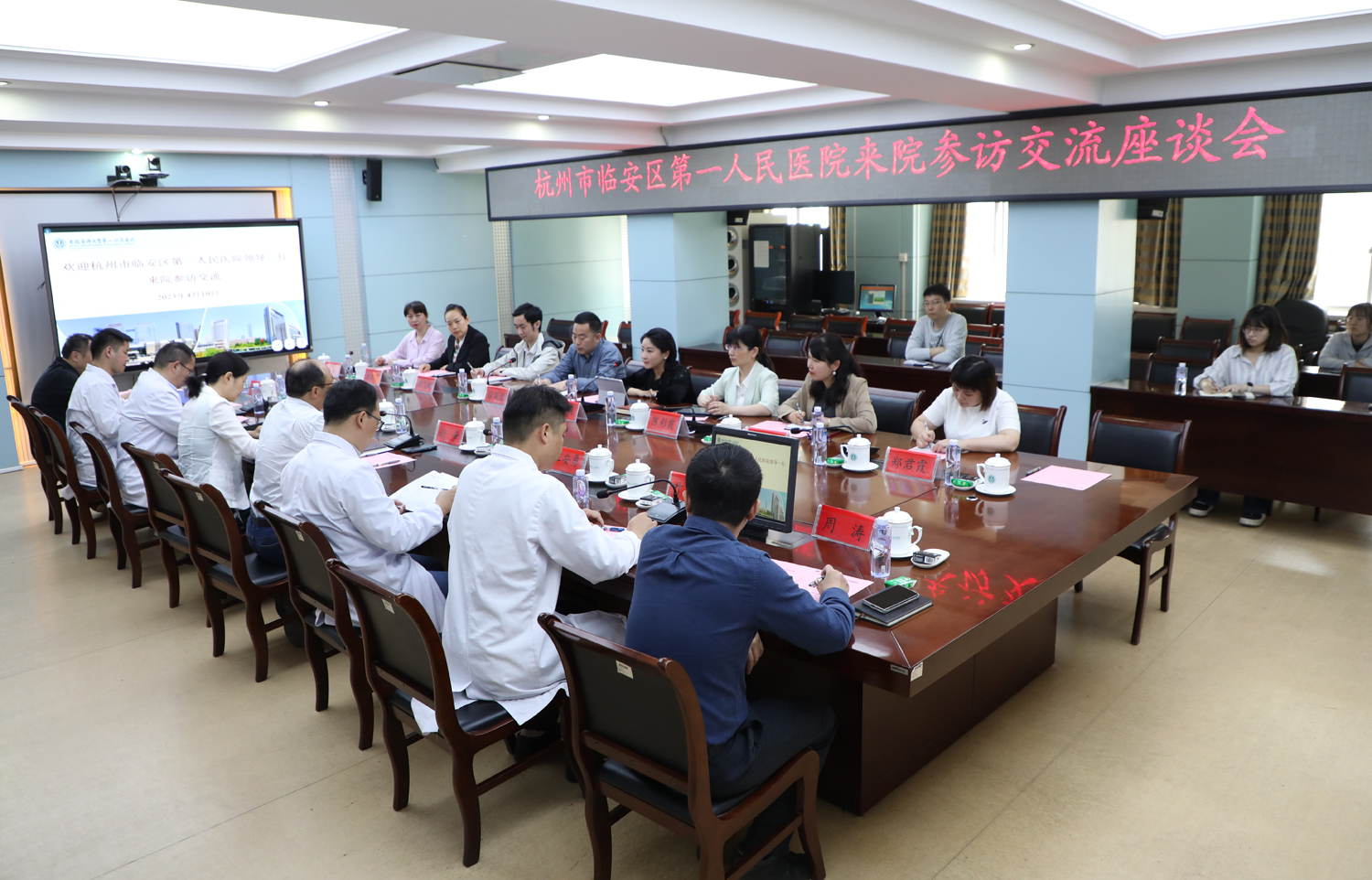 4月19日下午,杭州市临安区第一人民医院党委委员、副院长王琼一行来院参访交流,总会计师谢峰亲切会见来访客人并交流座谈。