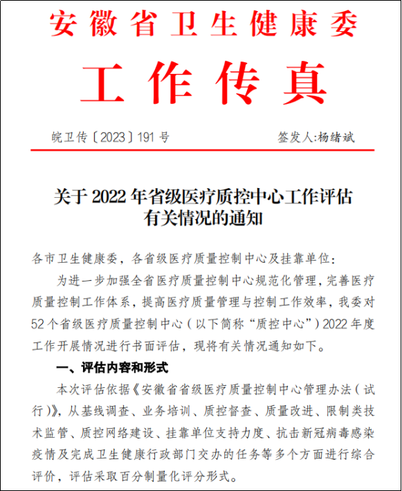 本次评估基线调查、业务培训、质控督查、质量改进、限制类技术监管、质控网络建设、挂靠单位支持力度、抗击新冠病毒感染疫情及完成卫生健康行政部门交办的任务等多个方面系统梳理各质控中心在2022年度工作开展情况,多维度进行综合评价。文件肯定了各质控中心在2022年取得的工作成效,指出了质控中心在工作开展中存在的问题,并就质控中心下一步工作提出要求。